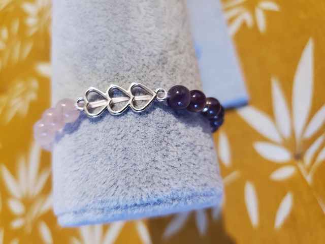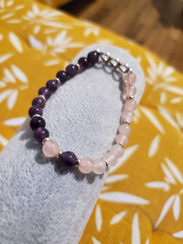 Magnifique bracelet "Amour & Sagesse" composé d'Améthyste et de Quartz Rose de Madagascar naturelle.